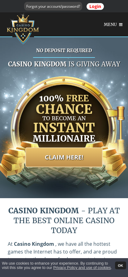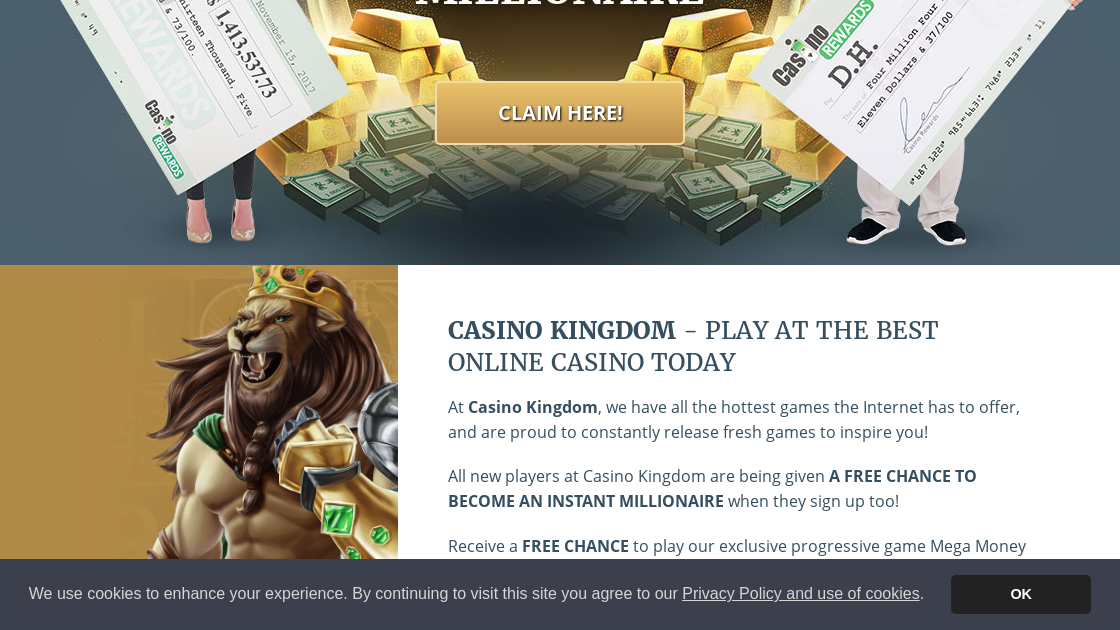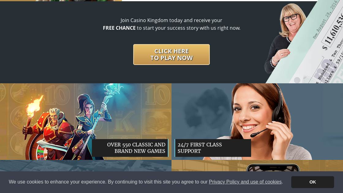 After playing at the Casino Kingdom Casino, I can vouch that this casino site is able to provide you with an enjoyable and reliable service. This casino is continuously innovating to give you the very best interactive online gaming experience. The site has an impressive game library that includes everything a gambler might be looking for. The casino uses the most advanced gaming software and has a dedicated and attentive customer service team. If you have any problems, the casino's support team will be available 24/7. If you also want to enjoy all that, come and feel how grand this casino can be!