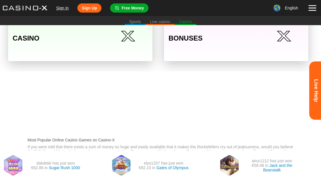 Casino X accepts many common money currencies, including EUR, NOK, RUB, SWK, USD.