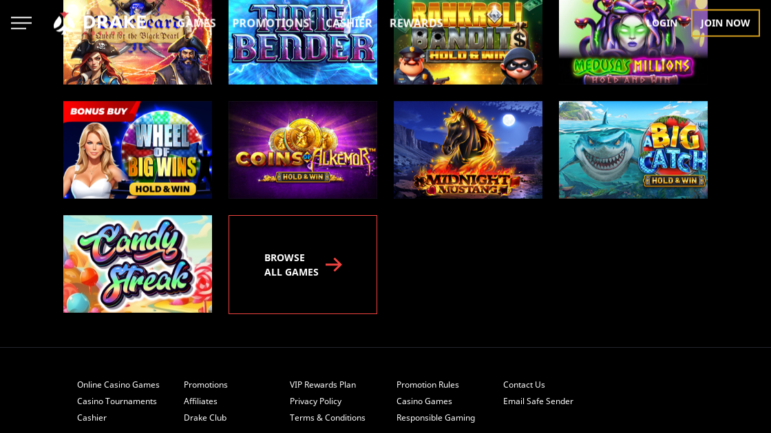 Drake Casino won’t let you down with the slot games, you can find many popular titles here and you can enjoy 3D series of slots from Betsoft; these games feature great storylines with the best graphics designed for the gaming market. Dive to more than 100 games, I am sure you won’t get bored anytime soon at this casino.