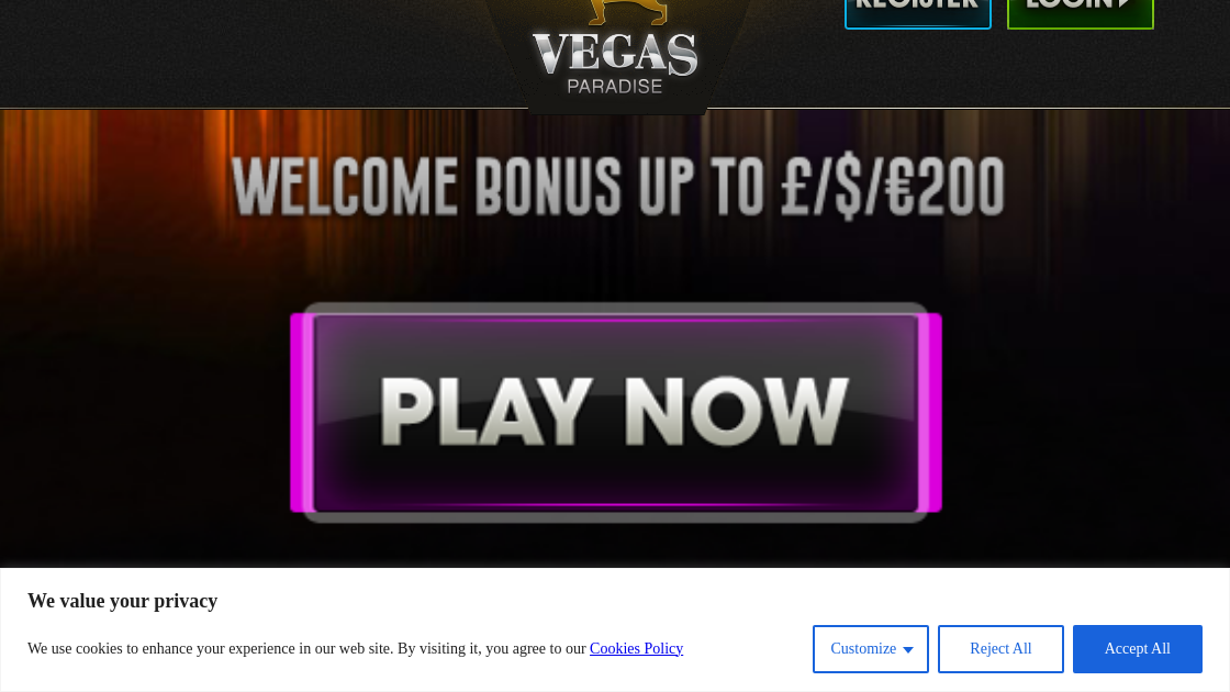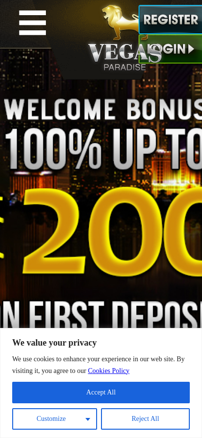 Vegas Paradise Casino which was founded in 2014 by ProgressPlay Limited Casinos is an online casino. They are well-known for being a Microgaming casino that offers the best service and gaming products with the availability of casino games from classic to modern ones. You will be amazed by its theme which is very vegas when you just land to the homepage of Vegas Paradise Casino with a visually stunning Vegas City backdrop.