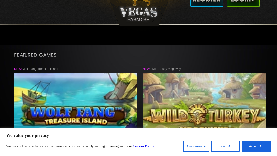 Games which you can find at Vegas Paradise are Slots, Jackpot Games, Scratch Games, Casino and Live Games, and of course their Mobile Games.