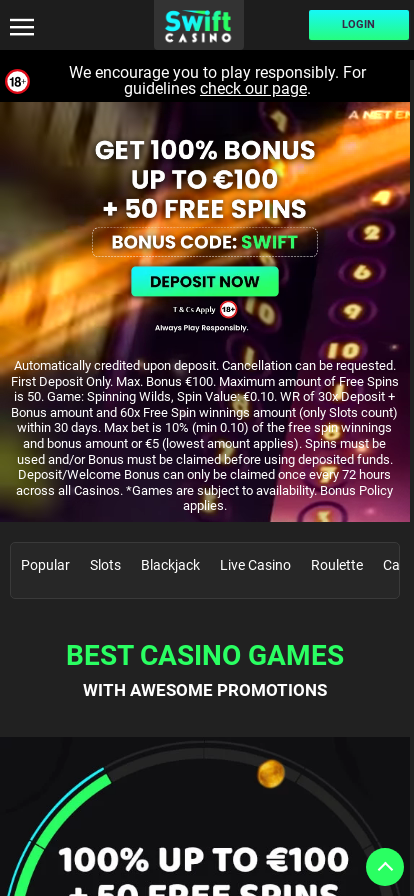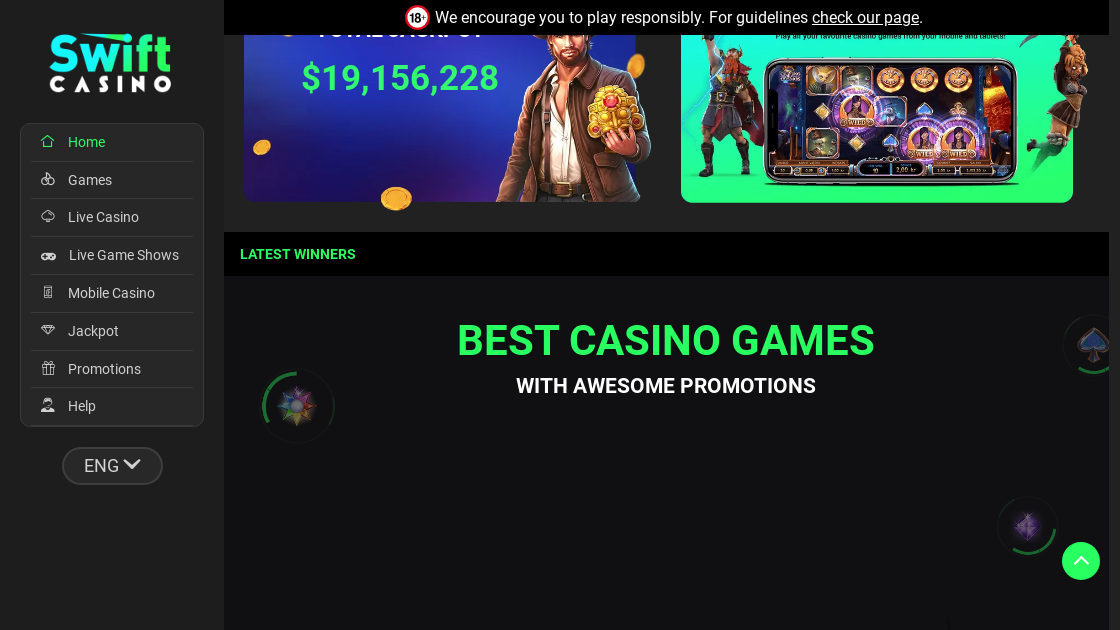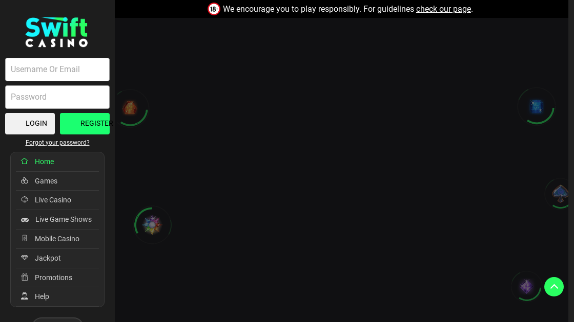 Swift Casino always offers slots with a standard platform. There are always easy - to - claim bonuses and promotions with great Return-to-player percentage. At the casino, you can find all types of slots from new to old, simple to highly-optional, Hawaiian to Chinese.