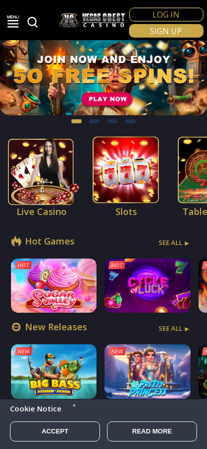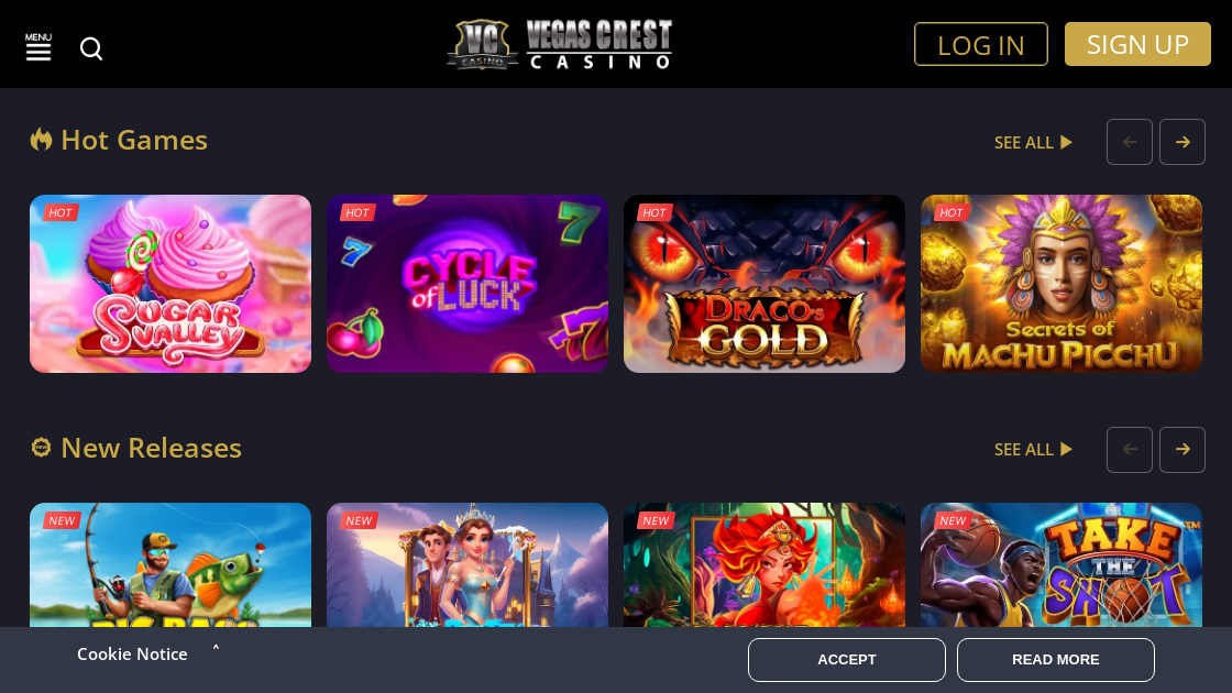Unfortunately, it seems that Vegas Crest Casino does not offer any bonuses to players from your country.