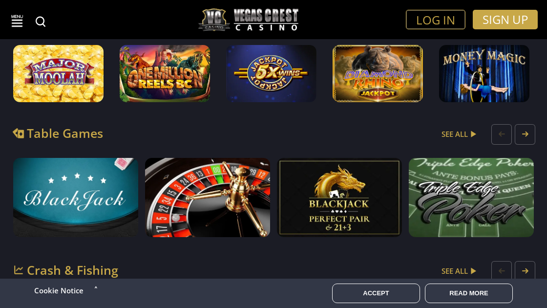 As Vegas Crest Casino has worked with many leading software providers, they have a fantastic list of table games for those who do not like slots. With four types, including Vegas Strip Blackjack, Atlantic City Blackjack, European Blackjack, and American Blackjack to choose from, this gambling site is your destination if table games are your favorite games.