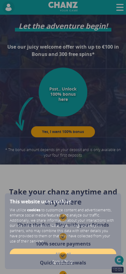 Chanz Casino offers players the safest and fastest ways to pay. But one thing that makes me not happy is that it only provides a few banking options and depends on the country where you live.