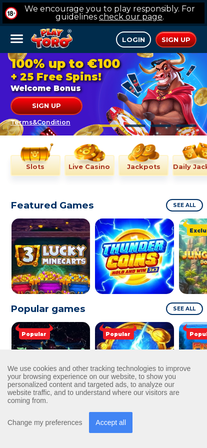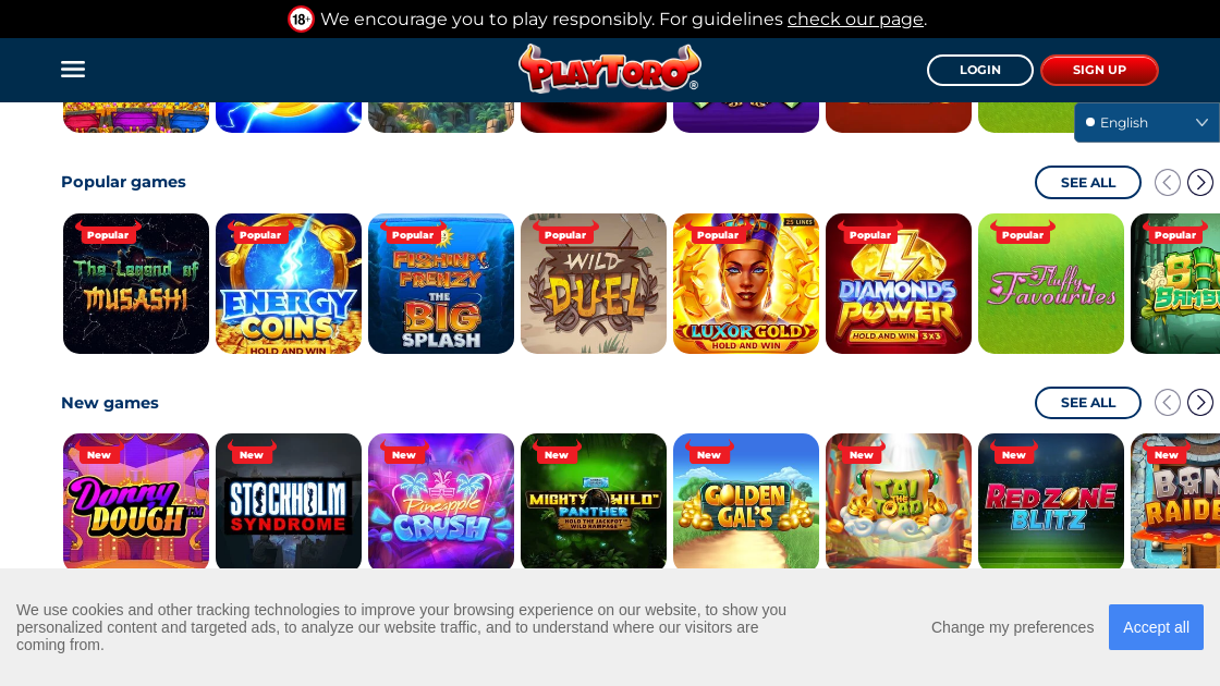 Playtoro Casino is among the new online casino sites on the market. Rolled in the gambling industry in 2020, the new kid on the block has plenty of things to go for. The operator creates a friendly yet professional environment to play for fun or for real money. What we appreciate about the site is the expansive selection of casino games, 24/7 support, fruitful bonuses and promotions and fast banking process.